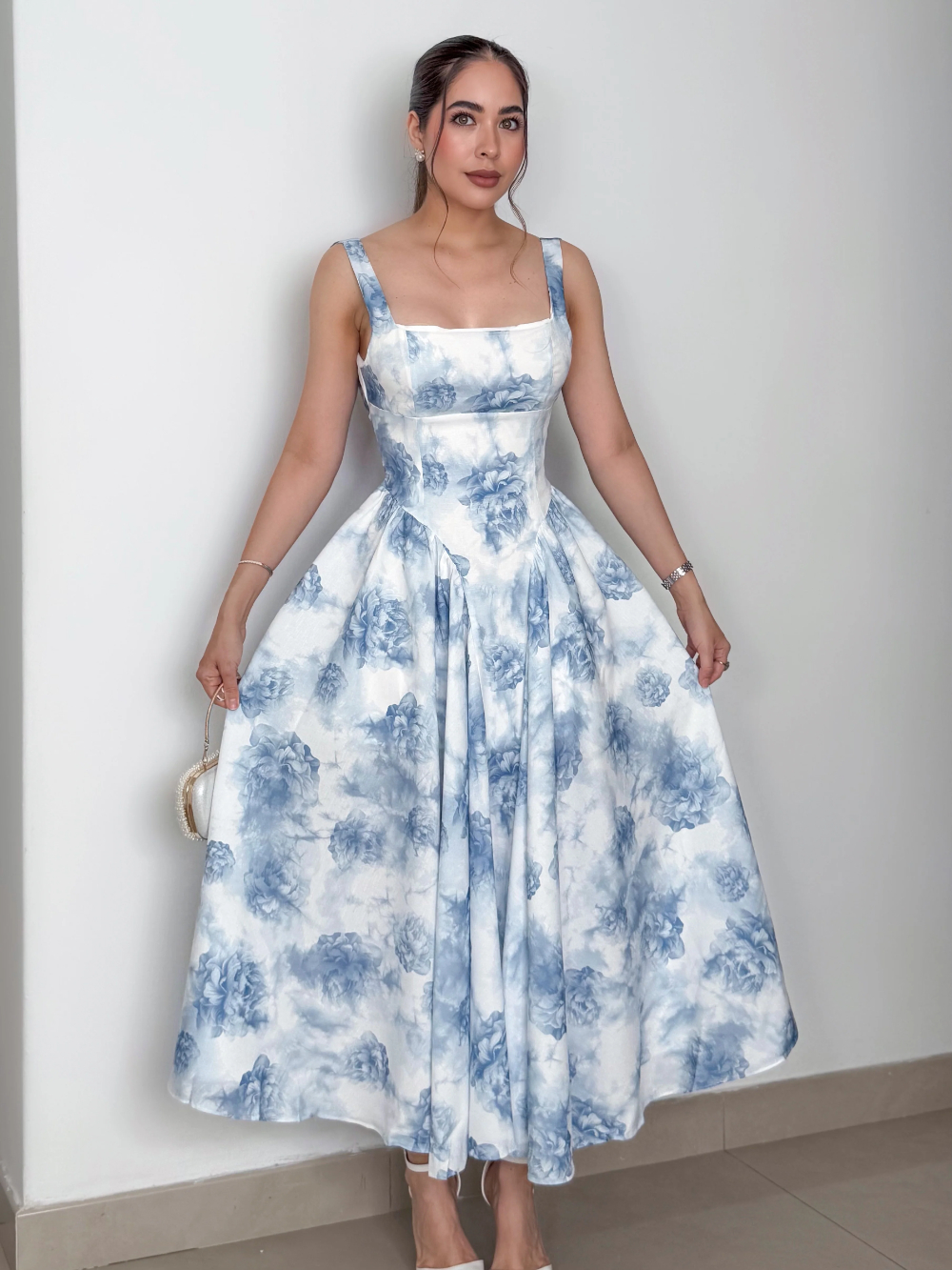 Floral Elements: Featuring a soft watercolor design and unique embroidery, each flower is rendered in delicate shading, creating a dreamy, painterly effect. The soft hue creates a sense of tranquil elegance, making this elegant dress a versatile piece that pairs beautifully with a variety of coordinating accessories!