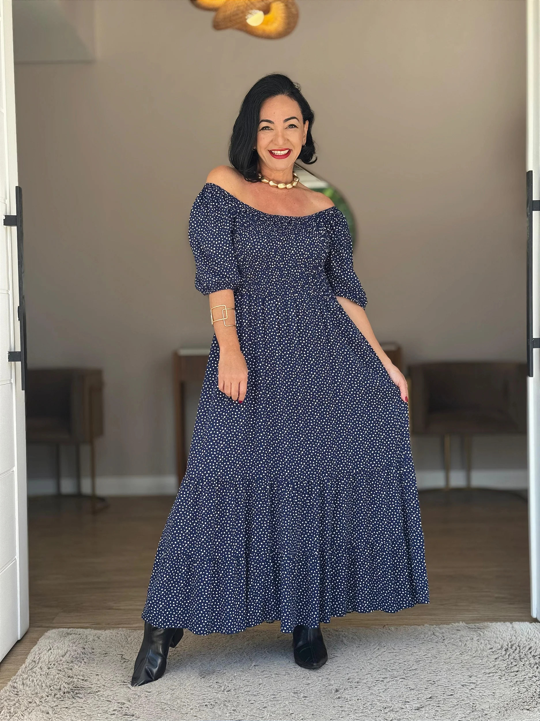 Dark Blue White Polka Dot V-neck Slim Fit Dress
