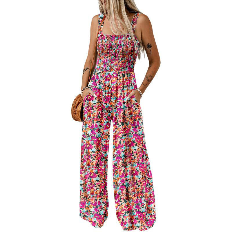 Enthusiastic Flower Sea Casual Relaxed-fit Sleeveless Printed Wide Leg Jumpsuit