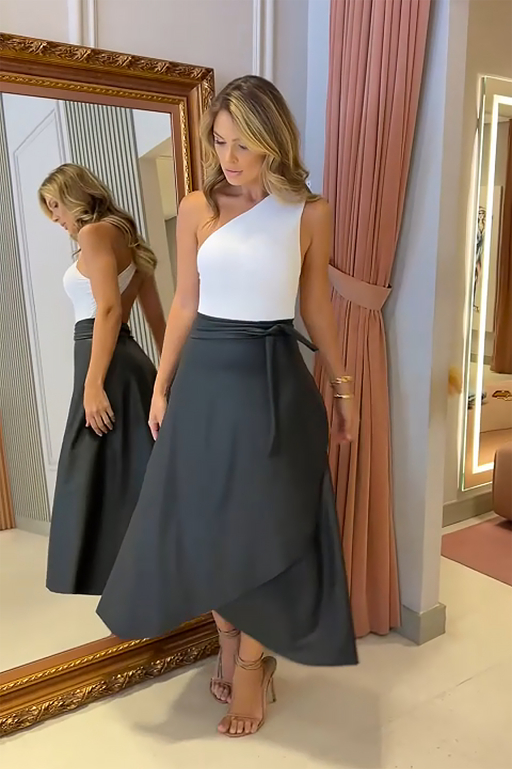 Floaty Comfort Black Satin Envelope Dress