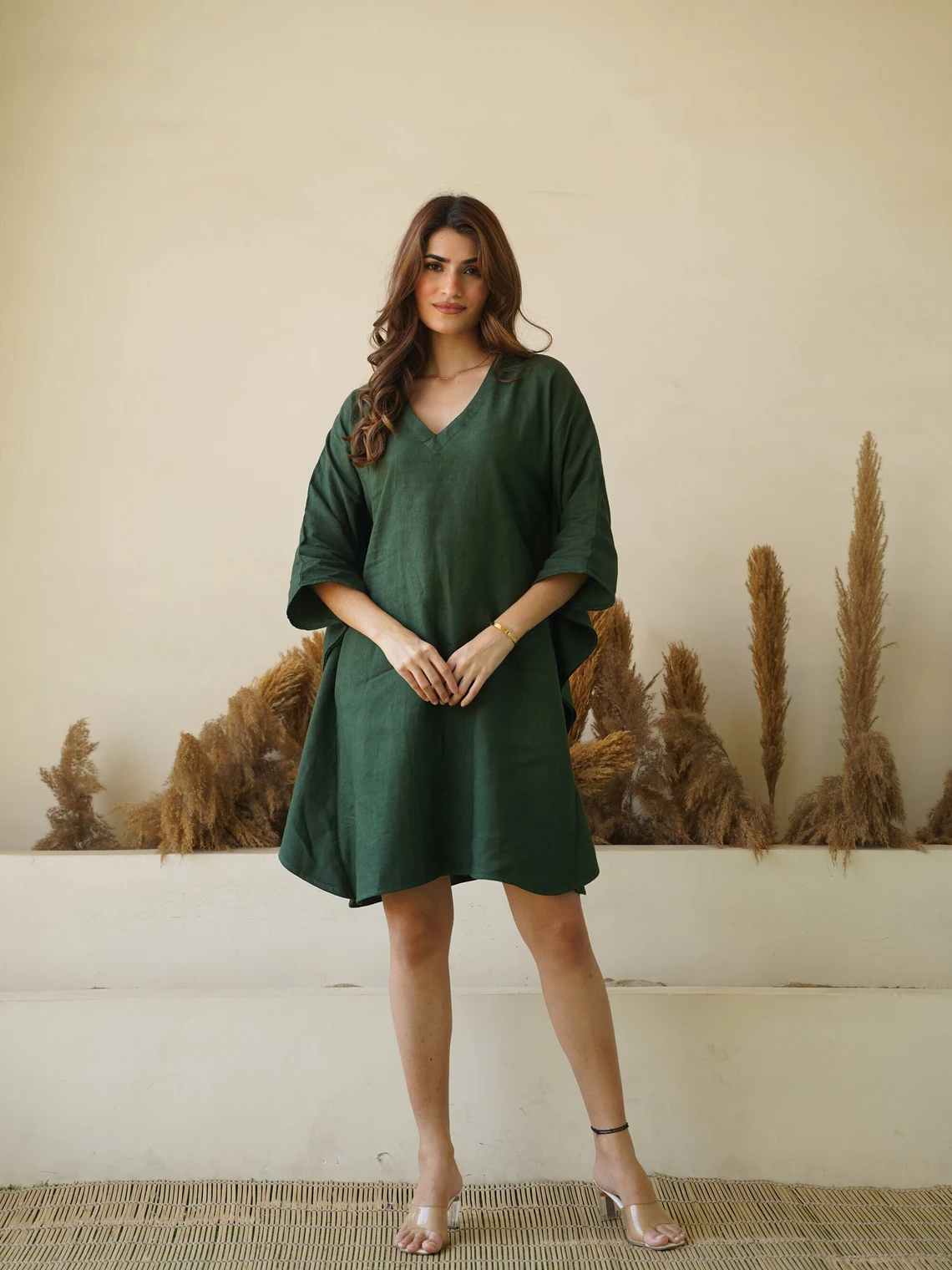 Forest Secret Linen Fabric Batwing Sleeve Relaxed Dress