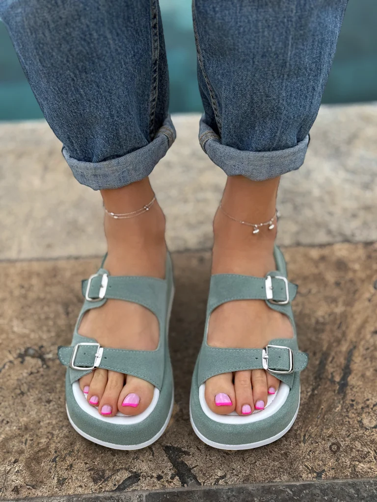 Glacier Mint Double Strap Lock Buckle Casual Shoes