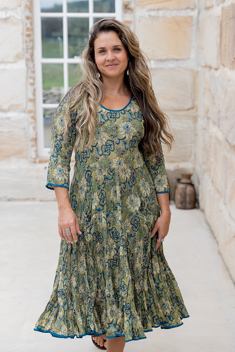 Hexagonal Star Flower Branch Totem Green Retro Dress