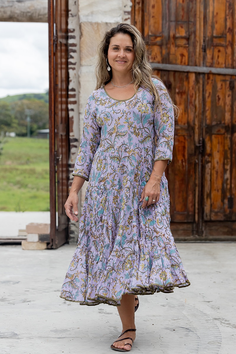 Hexagonal Star Flower Branch Totem Purple Retro Dress