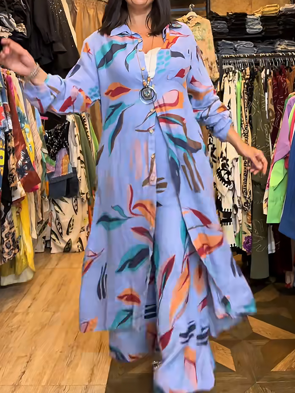 The pattern splicing at the neckline and trouser legs uses a three-dimensional embossing process to give the flower pattern an embossed texture. When touched, you can feel the uneven texture, breaking the monotony of flat printing. The gradient color fusion simulates the color transition from sea level to sunset. It looks like an art painting, but it is a "walking scenery" when worn on the body.