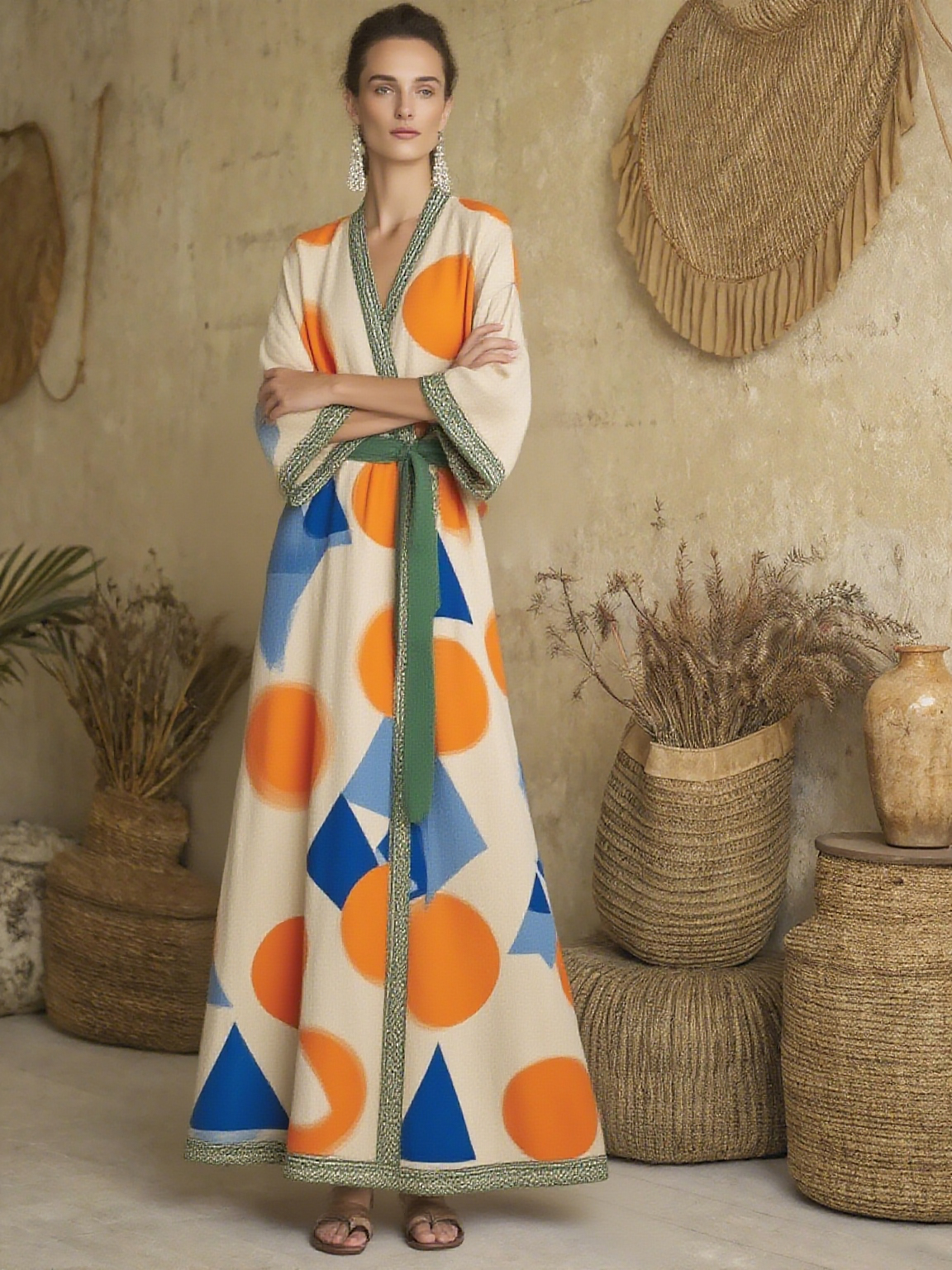 Linen Printed Kaftan Hat Style Dress