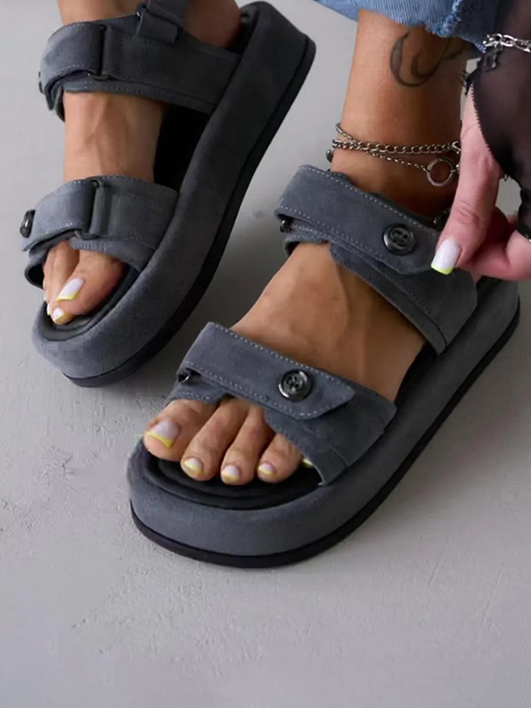Pinecone Black Double Strap Velcro Metal Button Casual Sandals