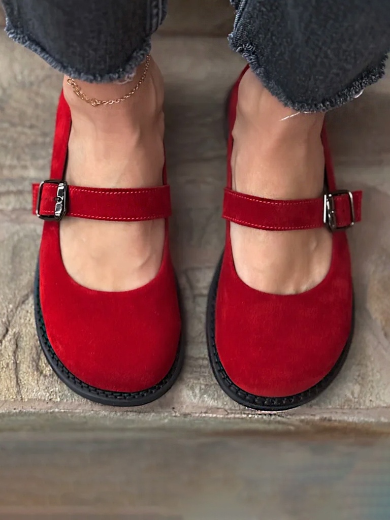 Red Flame Round Toe Buckle Strap Casual Shoes