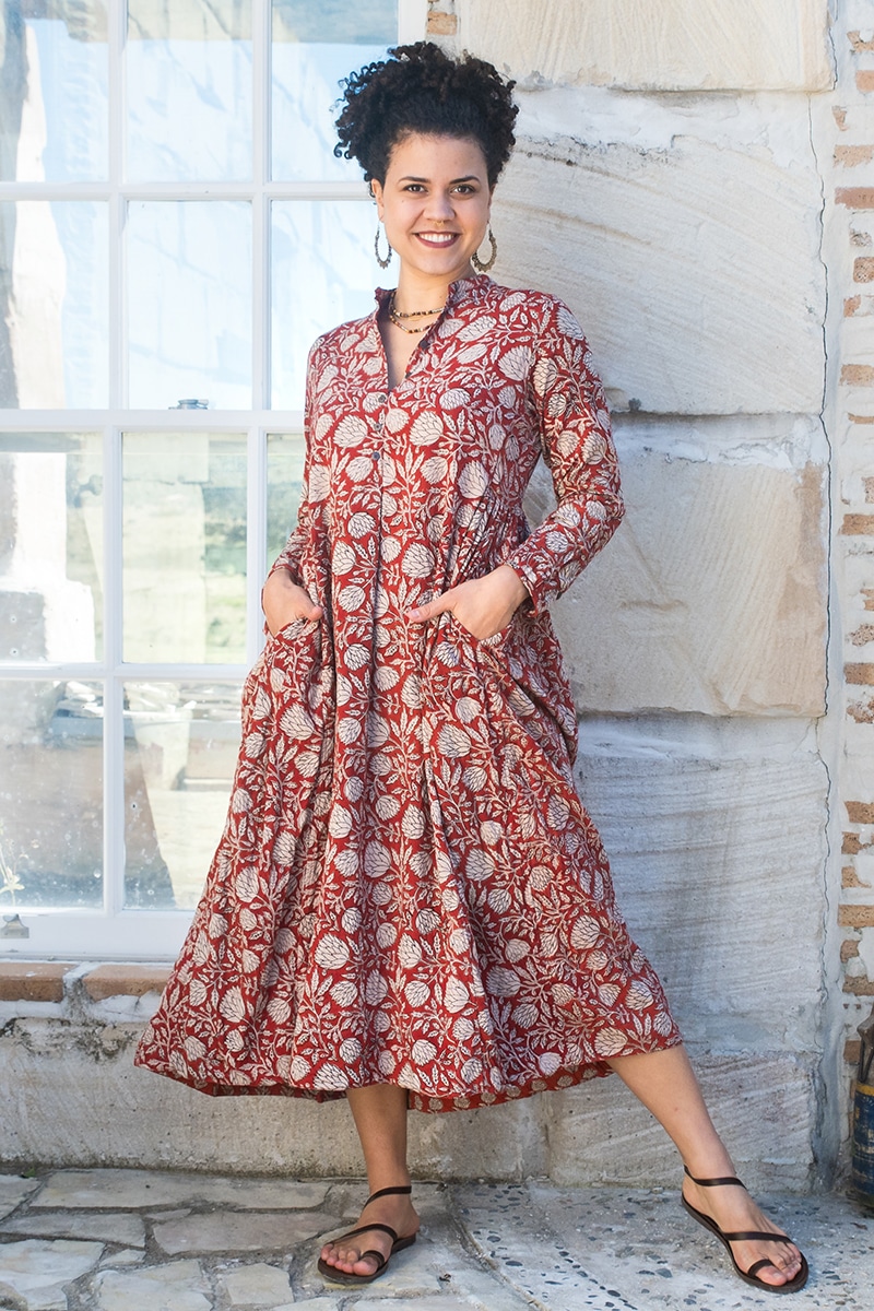 Red Hydrangea Vine Floral Retro Comfortable Dress