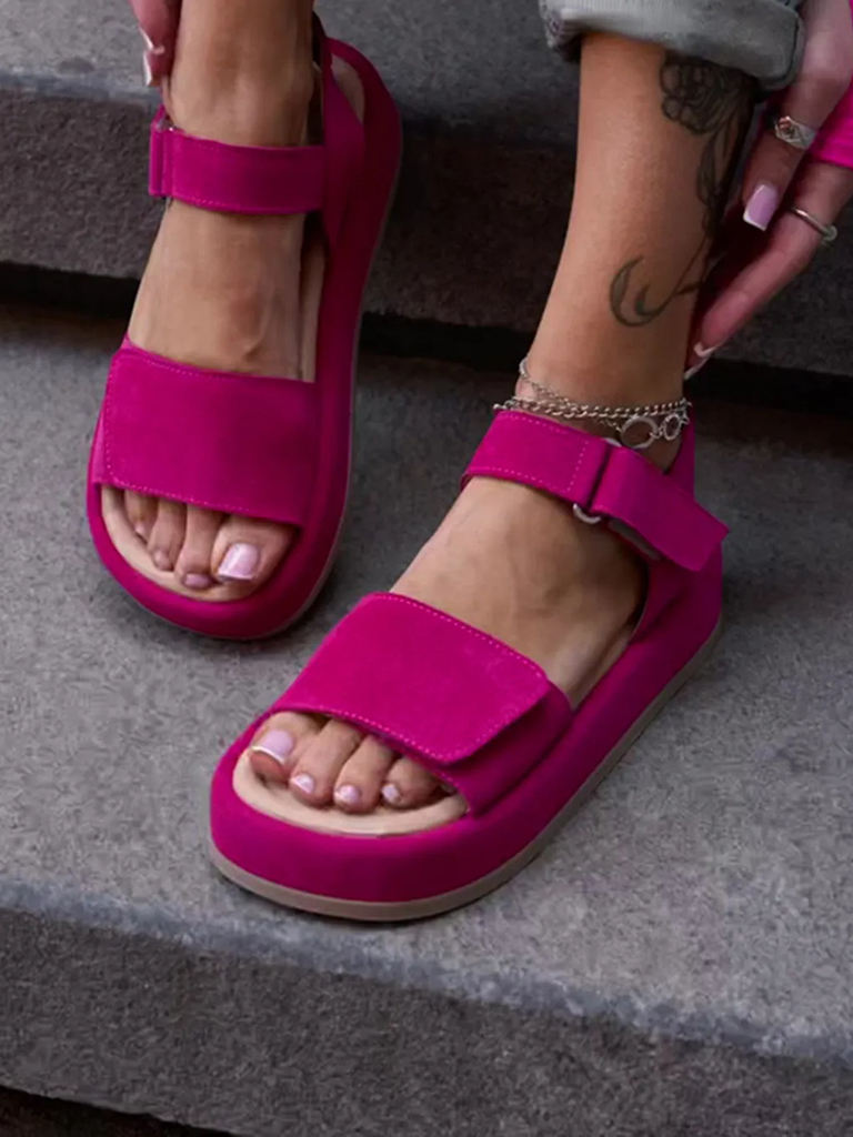 Red Raspberry Wine Two Strap Wide Velcro Casual Sandals