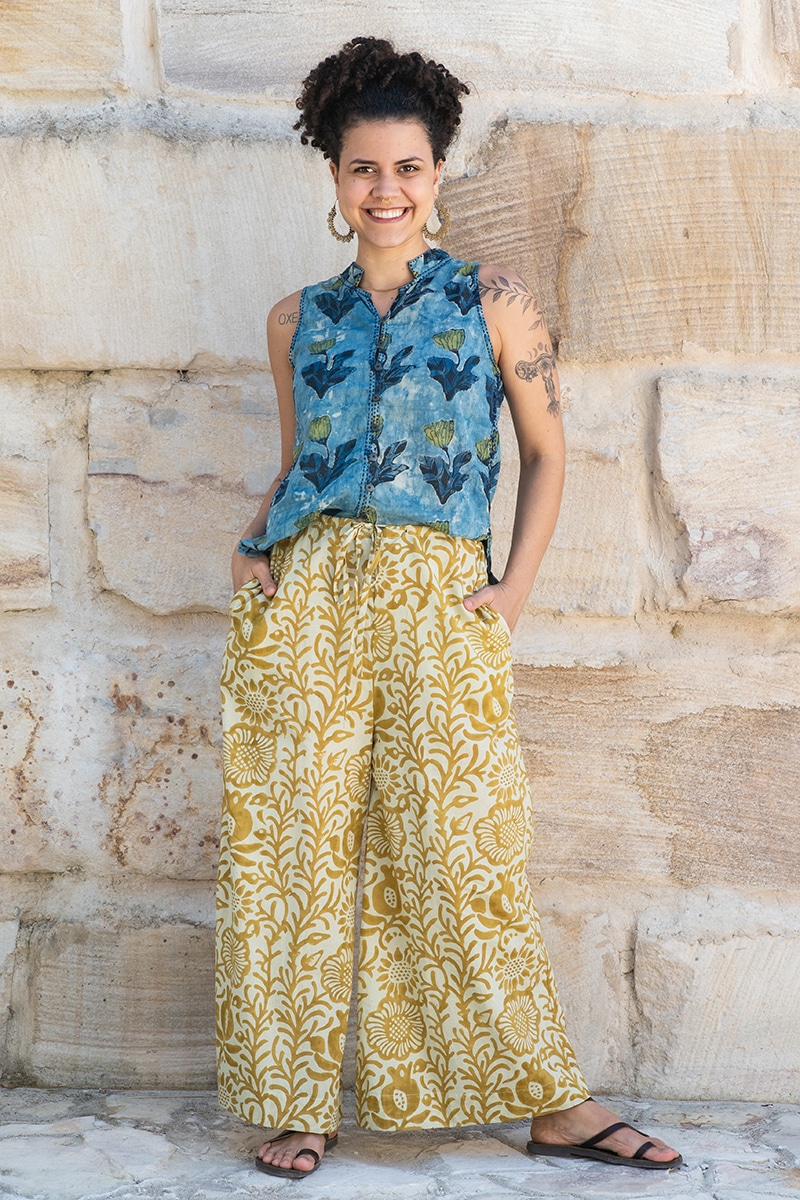 The pattern splicing at the neckline and trouser legs uses a three-dimensional embossing process to give the flower pattern an embossed texture. When touched, you can feel the uneven texture, breaking the monotony of flat printing. The gradient color fusion simulates the color transition from sea level to sunset. It looks like an art painting, but it is a "walking scenery" when worn on the body.