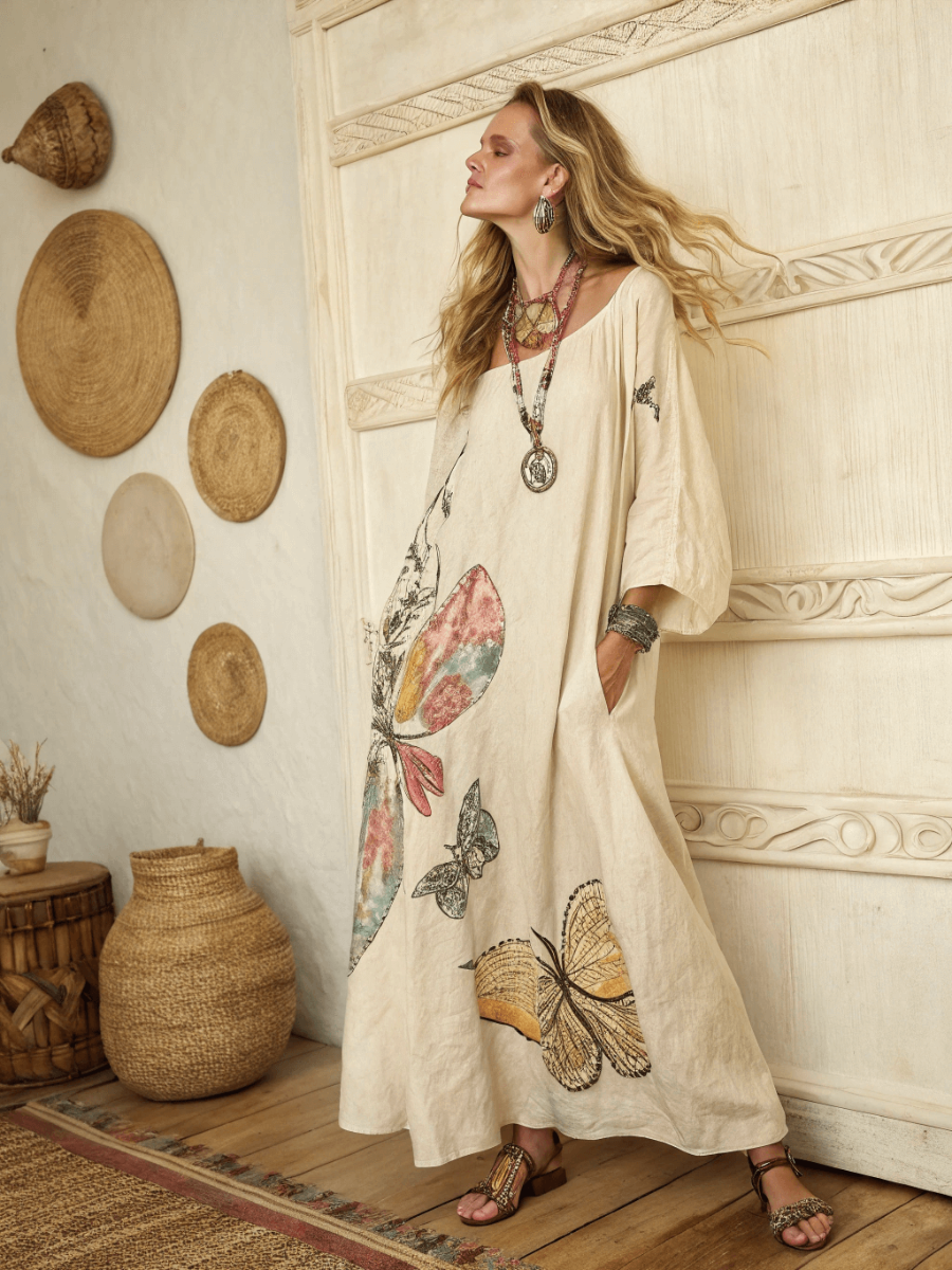 Women's cotton and linen one shoulder long skirt