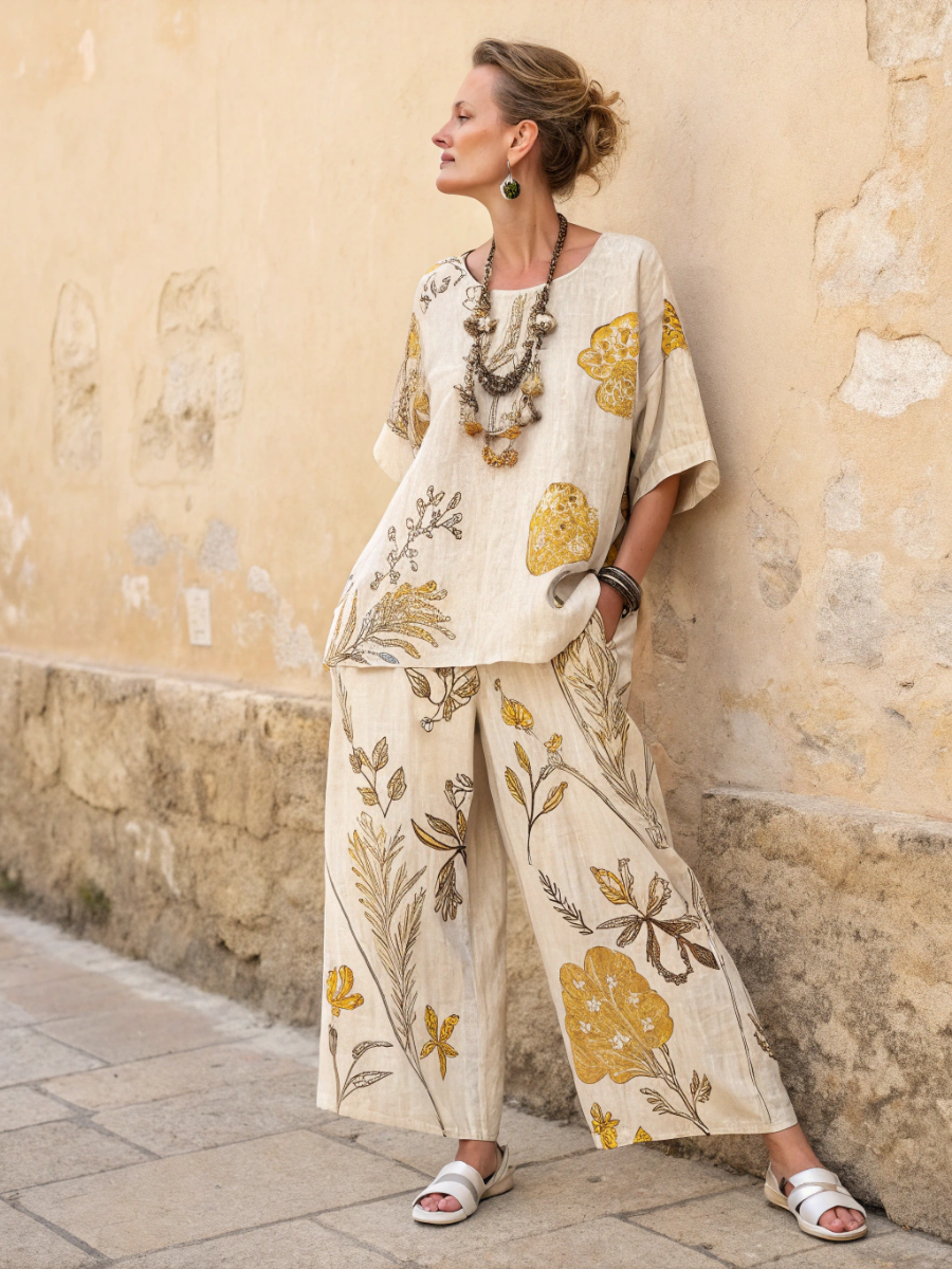 Women's holiday flower cotton and linen suit
