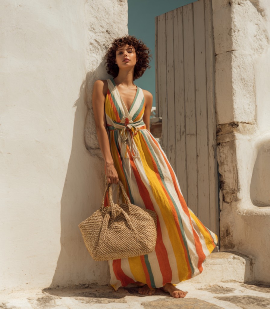 Women's Summer Vacation V-Neck Striped Dress